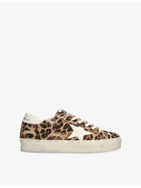 PRODUCT DETAILS - Golden Goose calf-hair trainers - 100% calf-hair leather - Lace-up fastening - Closed round toe, low-top silhouette, leopard-print upper, perforated sides, star applique at side, contrasting heel counter, branding at tongue, sides and heel counter, lettering at midsole trim, distressed details - Specialist leather clean - Upper: 100% calf-hair leather - Lining: 100% leather - Sole: 100% rubber Ref: R04397583