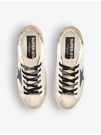 Super-Star distressed suede-trimmed glittered leather sneakers White