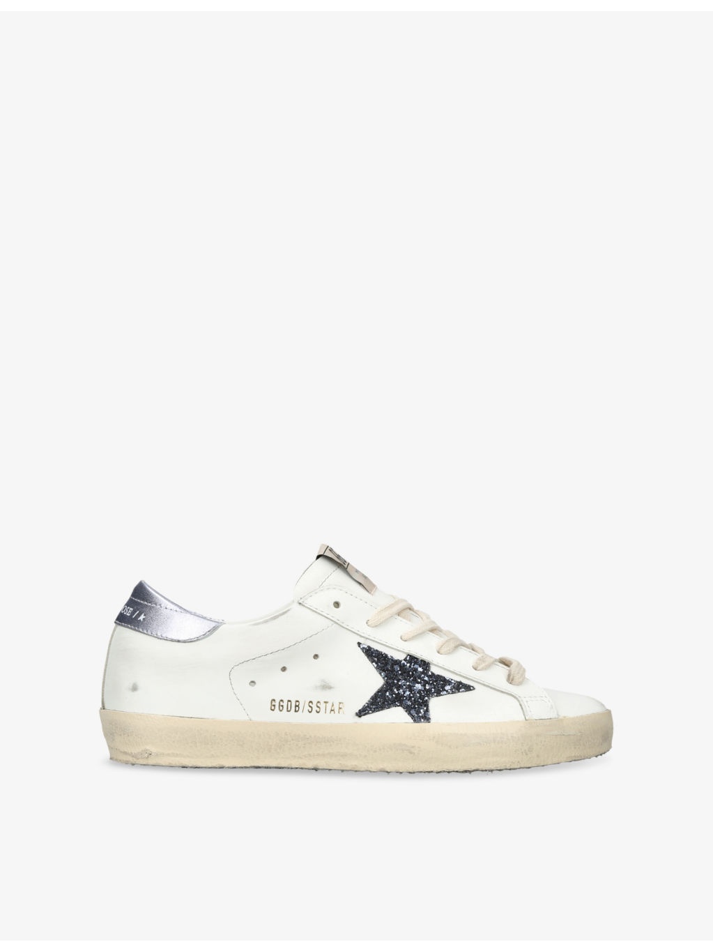 PRODUCT DETAILS - Golden Goose leather low-top trainers - 100% leather - Lace-up fastening - Closed round toe, low-top silhouette, perforated sides, glittered star applique at side, metallic heel counter, branding at tongue, sides and back, distressed finish - Specialist leather clean - Upper: 100% leather - Lining: 100% textile - Sole: 100% rubber Ref: R04482625