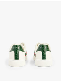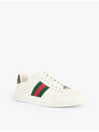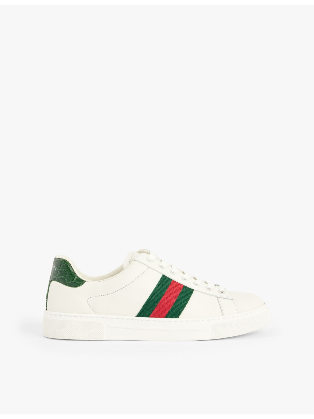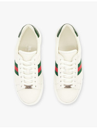 PRODUCT DETAILS - Gucci leather trainers - 100% leather - Lace-up fastening - Rounded toe, brand ACE hardware at front, stripe trim at sides, brand text print at back - Made in Italy - Heel height 1.1in / 30mm - Specialist leather clean - Upper: 100% leather - Lining: 100% leather - Sole: 100% rubber - Presented in a box, comes with a dust bag Ref: R04314197
