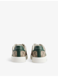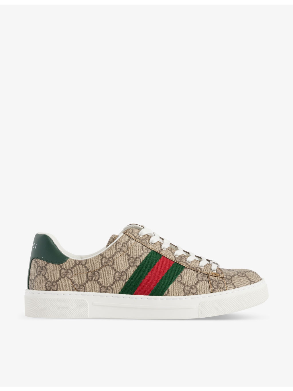 PRODUCT DETAILS - Gucci canvas trainers - 100% canvas - Lace-up fastening - Round toe, all over monogram print, striped panel at sides, foiled branding and leather panel at back, fully lined - Wipe with a clean, dry cloth - Made in Italy - Upper: 100% canvas - Lining: 100% leather - Sole: 100% rubber Ref: R04314198