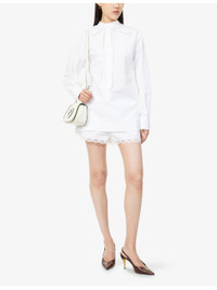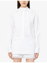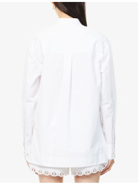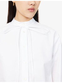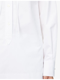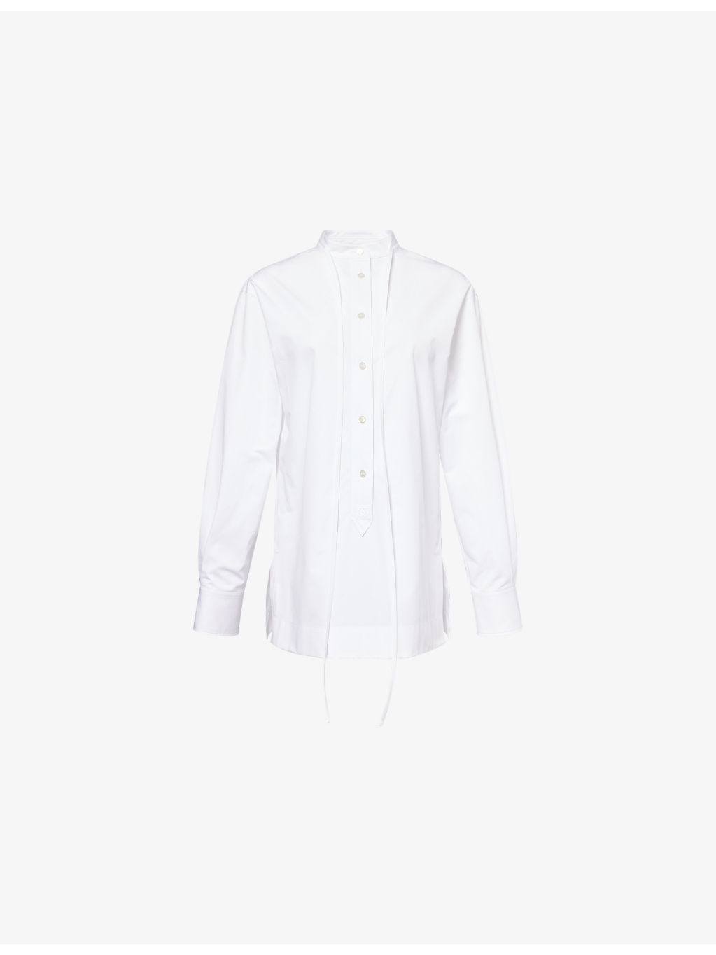 PRODUCT DETAILS - Gucci cotton-poplin shirt - 100% cotton; embroidery 100% polyester - Exposed button fastening at front - Band collar - Buttoned cuffs - Regular fit, self-tie fastening at collar, long sleeves, monogram design buttons at cuffs, brand embroidery at front, split at sides, straight at yoke and pleat at back - Dry clean - Made in Italy - True to size - Size UK 8: length 29in / 74cm - Model is 5ft 10in/1.78m and wears a size UK 8 - Lightweight, slight stretch Ref: R04472728