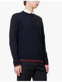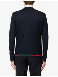 PRODUCT DETAILS - Gucci wool jumper - 100% wool - Pulls on - Regular fit, crewneck, long sleeves, branded trim, ribbed trims - Specialist dry clean - Made in Italy - Model is 6ft 2in/1.88m and wears a size medium - Lightweight, slight stretch Ref: R04389564