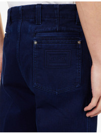 PRODUCT DETAILS - Gucci denim jeans - 100% cotton - Button and zip-fly fastening at front - Straight leg, mid rise, belt loops, two slip pockets at sides, two welt pockets at back, one patch pocket at back with embossed brand logo, all-over washed effect - Dry clean - Made in Italy - Size UK 32: rise 12.9in / 33cm, inside leg 30.7in / 78cm, leg opening 18in / 47cm - Model is 6ft 2in/1.88m and wears a size UK 32 - Midweight, non-stretch Ref: R04481479