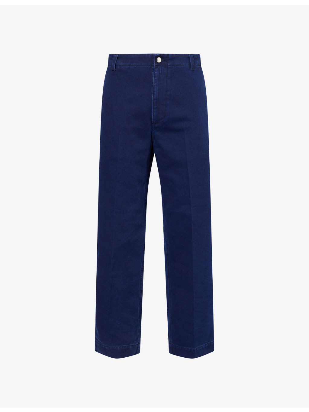 Embossed-Logo Straight-Leg Denim Chino Trousers