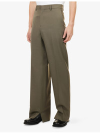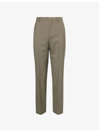 PRODUCT DETAILS - Gucci wool trousers - 100% wool - Button and zip-fly fastening at front - Straight leg, mid rise, belt loops, two slip pockets at sides, two welt pockets at back, pressed traveller's crease at front, embossed brand logo at back - Dry clean - Made in Italy - Size UK 32: rise 11.4in / 29cm, inside leg 33.4in / 85cm, leg opening 11.4in / 29cm - Model is 6ft 2in/1.88m and wears a size UK 32 - Midweight, non-stretch Ref: R04481443