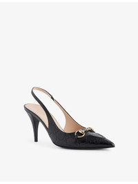 PRODUCT DETAILS - Gucci heeled leather pumps - 100% leather - Slips on - Pointed toe, horsebit hardware at front, embossed brand monogram - Heel height 85mm - Specialist leather clean - Made in Italy - Upper: 100% leather - Lining: 100% leather - Sole: 100% leather Ref: R04391018