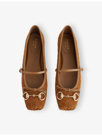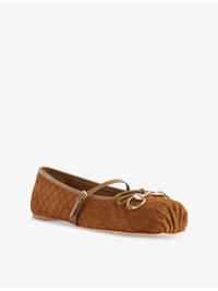 PRODUCT DETAILS - Gucci leather ballerina pumps - 100% leather - Buckle fastening - Closed square toe, horsebit detail at front, all-over GG monogram, sacchetto construction, padded insole, leather trims, gold-tone hardware - Specialist leather clean - Made in Italy - Upper: 100% leather - Lining: 100% leather - Sole: 100% leather - Presented in a box Ref: R04391032