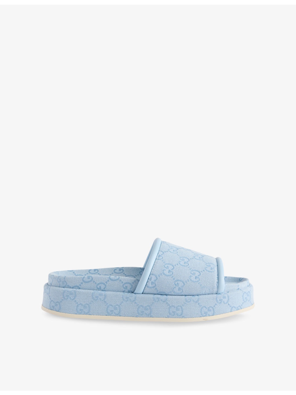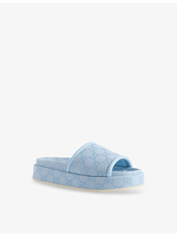 PRODUCT DETAILS - Gucci canvas sandals - 71% cotton, 29% polyester - Platform heel, all-over brand monogram pattern - Heel height 30mm - Wipe with a clean, dry cloth - Made in Italy - Upper: 71% cotton, 29% polyester - Lining: 71% cotton, 29% polyester - Sole: 100% rubber Ref: R04391043