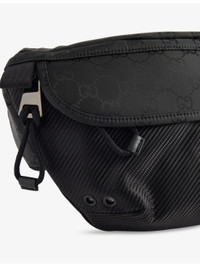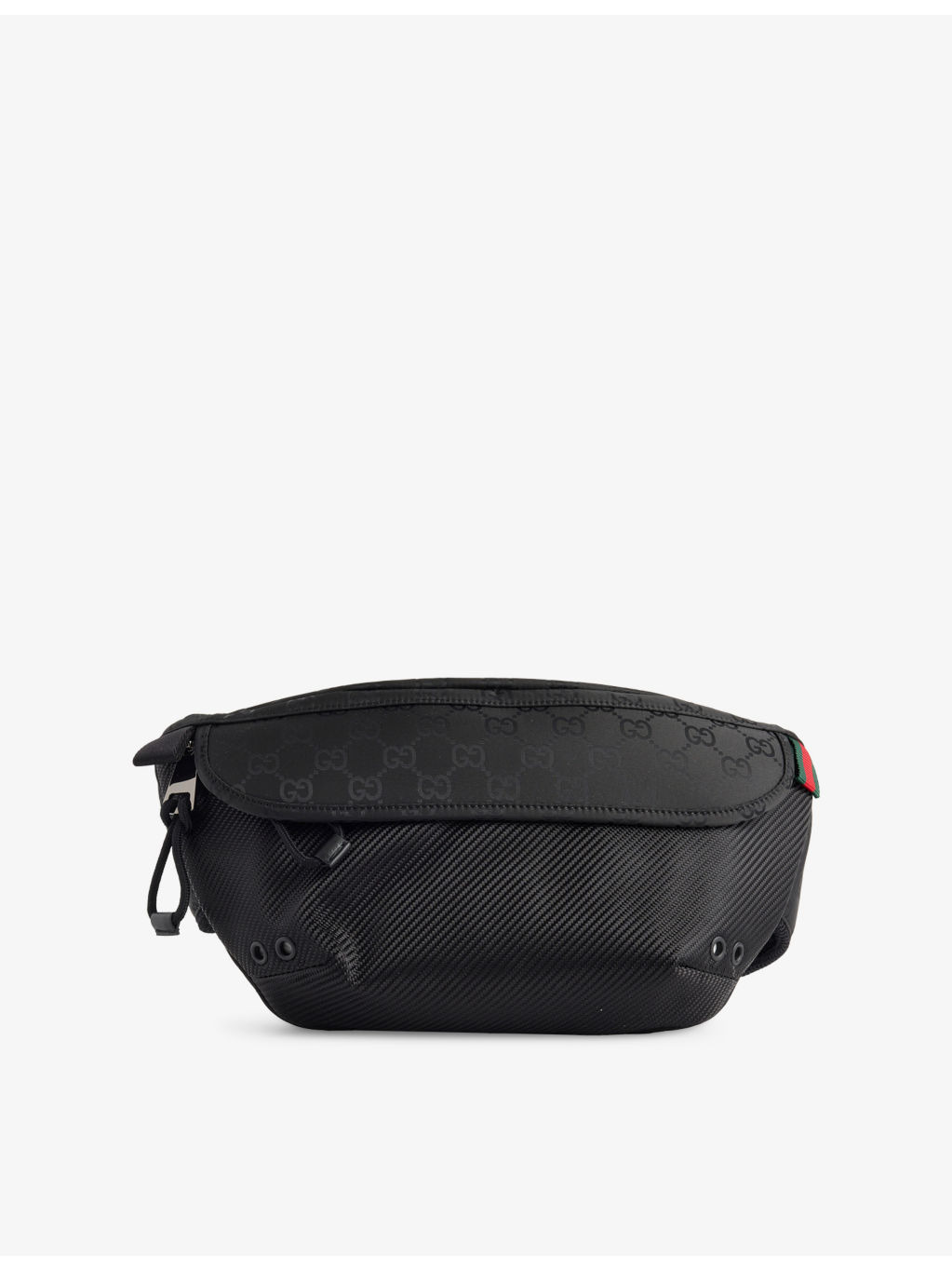 PRODUCT DETAILS - Gucci woven belt bag - 100% nylon; lining 100% nylon - Zip fastening - Zip pocket at adjustable strap, flap and eyelets at front, ribbed at front, zip pocket at back, monogram print at front and back, silver-toned hardware, one main compartment, internal zip pocket and brand patch, fully lined - Height 17cm, width 33cm, depth 5cm, strap length 70cm, strap drop 31cm - Wipe with a clean, dry cloth - Made in Italy - Comes with a dust bag Ref: R04420835