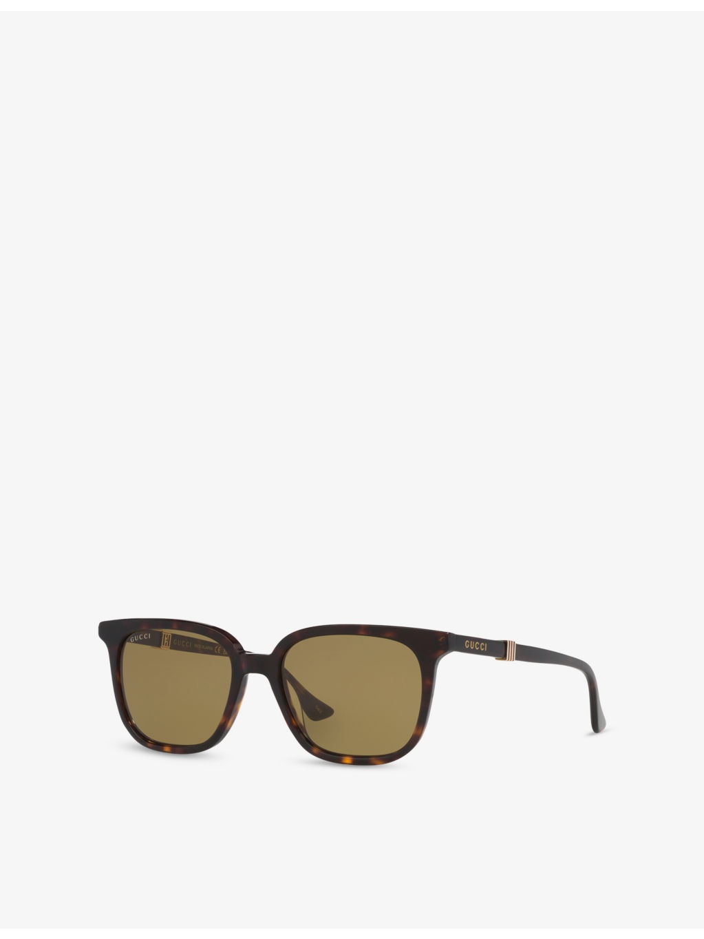 PRODUCT DETAILS - Gucci acetate sunglasses - Style number: GG1493S - 100% acetate - Tortoiseshell frame, 100% UV-protected lens, logo branded sides, gold-toned hardware - Frame shape: square - Lens width 5.4cm, bridge size 1.8cm, temple length 14.5cm - Wipe with a clean, dry cloth - Comes with hard case and cloth Ref: R04289678