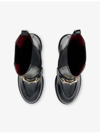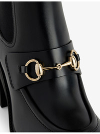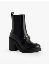 PRODUCT DETAILS - Gucci leather ankle boots - 100% leather - Pulls on - Block heel, horsebit hardware at front, round toe, elasticated panels at sides, patent finish - Heel height 70mm - Specialist leather clean - Made in Italy - Upper: 100% leather - Lining: 100% leather - Sole: 100% rubber Ref: R04391038