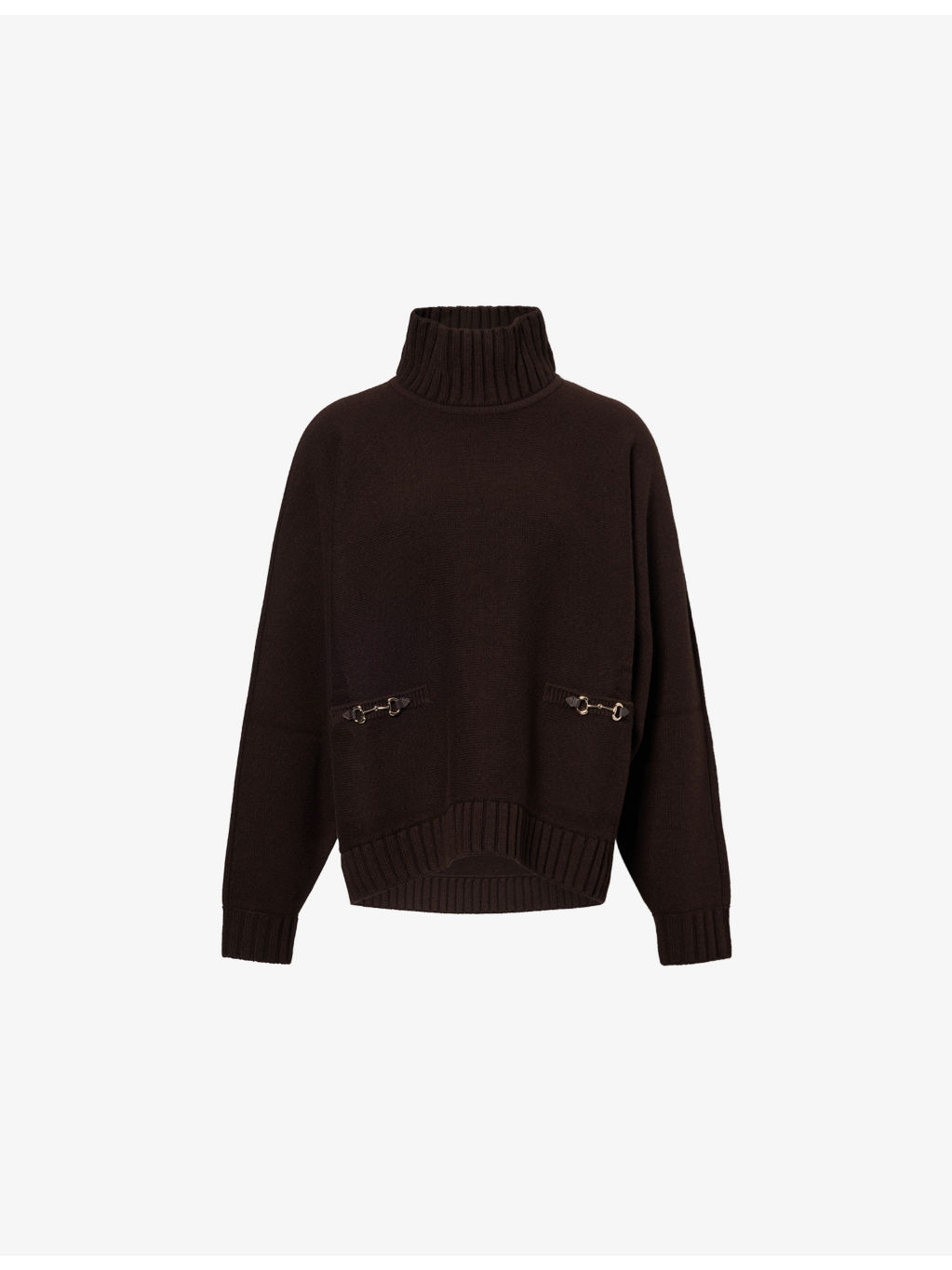 PRODUCT DETAILS - Gucci wool-blend knitted jumper - 70% wool, 30% cashmere - Relaxed fit, high neck, dropped shoulders, long sleeves, pockets at front with horsebit trim, brushed texture, ribbed trims - Dry clean only - Made in Italy - True to size - Model is 5ft 10in/1.78m and wears a size small - Midweight, stretchy Ref: R04472709
