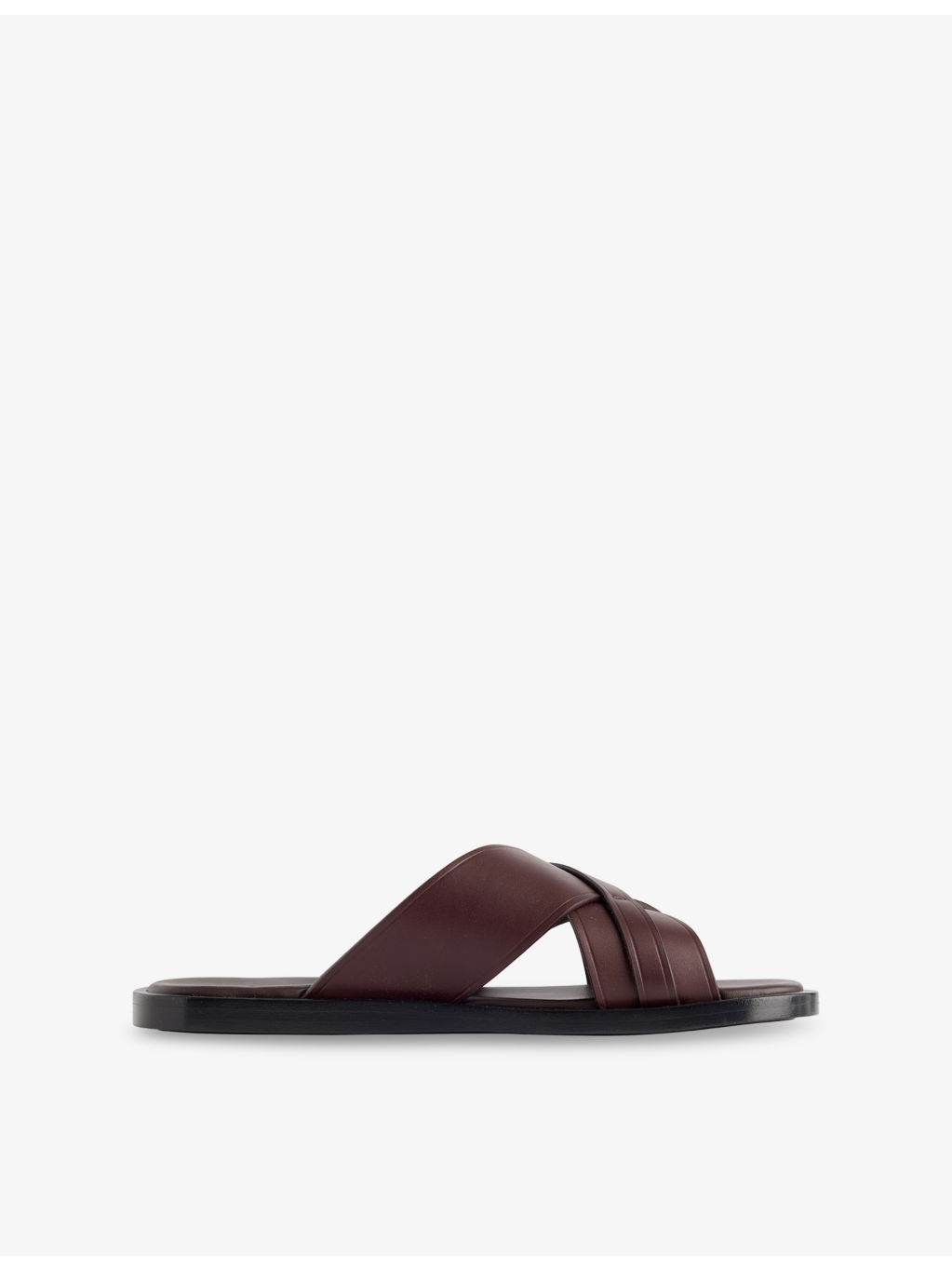 PRODUCT DETAILS - Gucci leather sliders - 100% leather - Open square toe, cross-over top straps, slim strap overlay with interlocking G hardware, silver-toned hardware - Specialist leather clean - Made in Italy - Upper: 100% leather - Lining: 100% leather - Sole: 100% leather Ref: R04486726