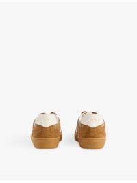 PRODUCT DETAILS - Gucci suede trainers - 100% suede; lining 100% leather; sole 100% rubber; upper 100% suede - Lace-up fastening - Round toe, branded tongue, monogram patch at sides, all-over suede texture, contrast monogram canvas panels, fully lined - Wipe with a clean, dry cloth - Made in Italy - Upper: 100% suede - Lining: 100% leather - Sole: 100% rubber Ref: R04391027