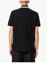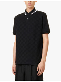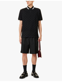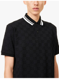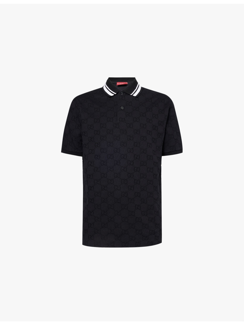 PRODUCT DETAILS - Gucci stretch-cotton polo shirt - 94% cotton, 6% elastane - Pulls on - Regular ft, contrast striped polo collar, short sleeves, all-over monogram embroidered logo, straight hem - Dry clean - Made in Italy - Model is 6ft 2in/1.88m and wears a size medium - Midweight, non-stretch Ref: R04327001