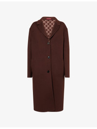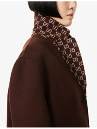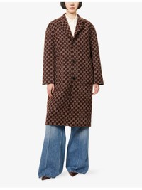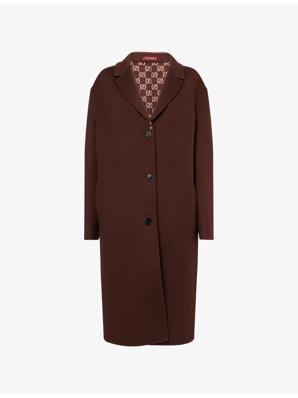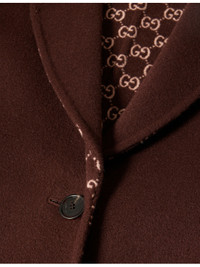 PRODUCT DETAILS - Gucci wool coat - 99% wool, 1% silk - Button fastening - Relaxed fit, notch lapels, dropped shoulders, long sleeves, front pockets, internal monogram pattern, double faced wool - Dry clean - True to size - Size UK8: length 43in / 109.22 - Model is 5ft 10in/1.78m and wears a size UK 8 - Midweight, non-stretch Ref: R04472705