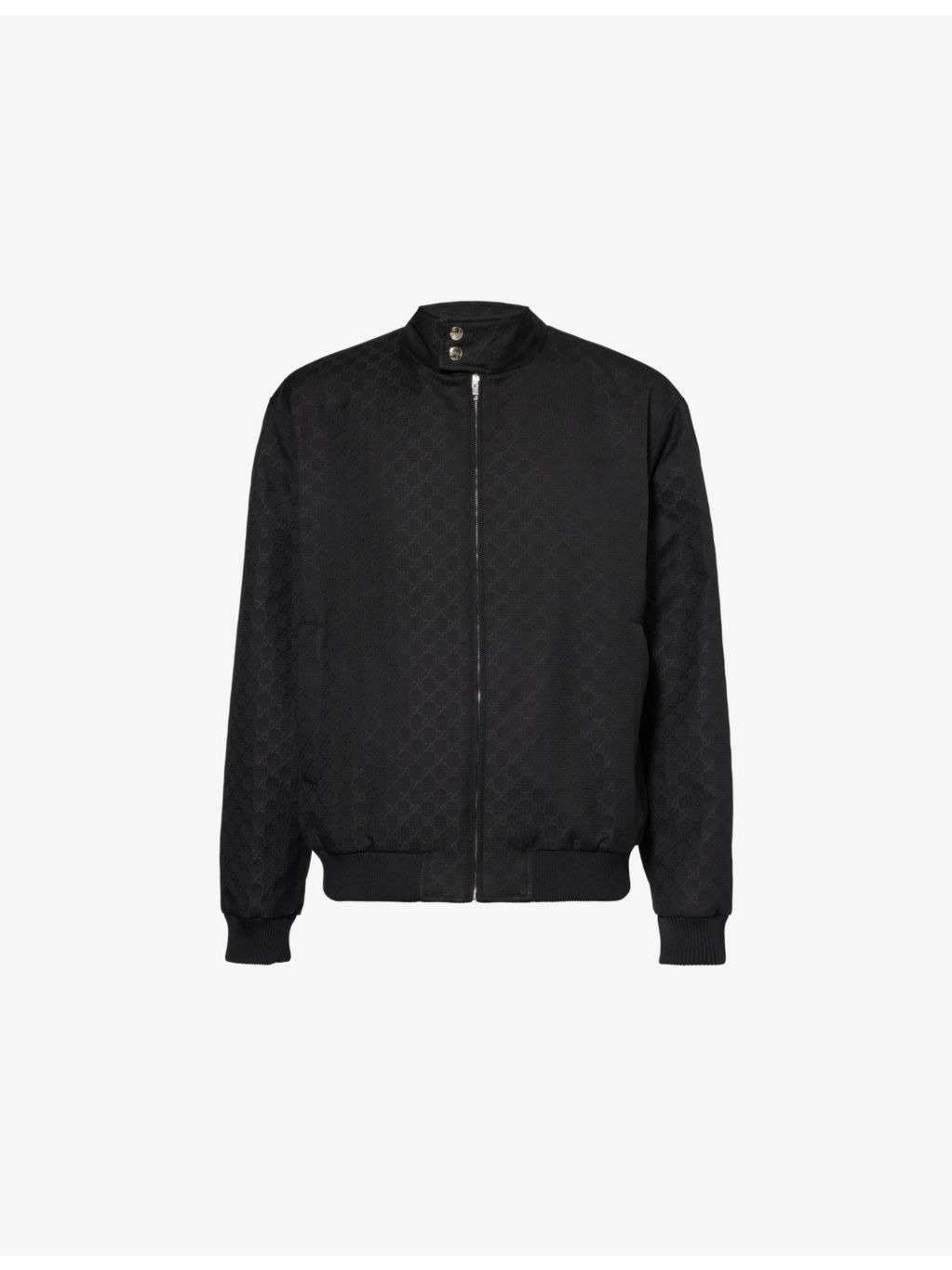 PRODUCT DETAILS - Gucci woven-blend jacket - 73% polyester, 27% cotton; filling 100% polyester; lining 100% polyamide; pocketlining 100% cotton; trims 96% cotton, 4% elastane - Concealed zip fastening at front - Button collar band - Elasticated cuffs - Relaxed fit, collar, long sleeves, two zip pockets at front, all-over monogram print, all-over padded, fully lined, ribbed trims - Dry clean - Made in Italy - Size medium: length 27in / 69cm, chest 48in / 122cm - Model is 6ft 2in/1.88m and wears a size UK 40 - Midweight, non-stretch Ref: R04389559