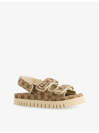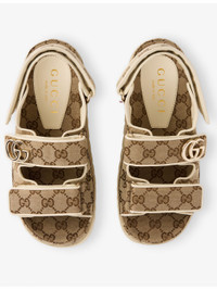 PRODUCT DETAILS - Gucci canvas sandals - 100% canvas - Hook-and-loop tape fastening - Round open toe, double strap, all-over GG monogram, Double G hardware, open heel, chunky serrated sole - Wipe with a clean, dry cloth - Made in Italy - Upper: 100% canvas - Lining: 100% canvas - Sole: 100% rubber - Presented in a box, comes with a dust bag Ref: R04391040