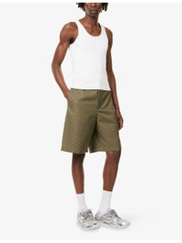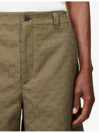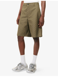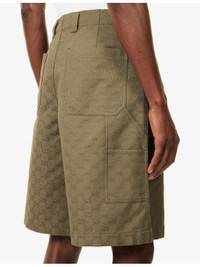 PRODUCT DETAILS - Gucci cotton-blend shorts - 70% cotton, 30% polyester - Button and zip-fly fastenings at front - Regular fit, mid-rise, belt loops, side slip pockets, patch pockets at back, all-over monogram pattern - Dry clean - Size UK 32: rise 15in / 38cm, inside leg 11in / 28cm, leg opening 28in / 71cm - Model is 6ft 2in/1.88m and wears a size UK 32 - Midweight, non-stretch Ref: R04481453