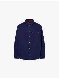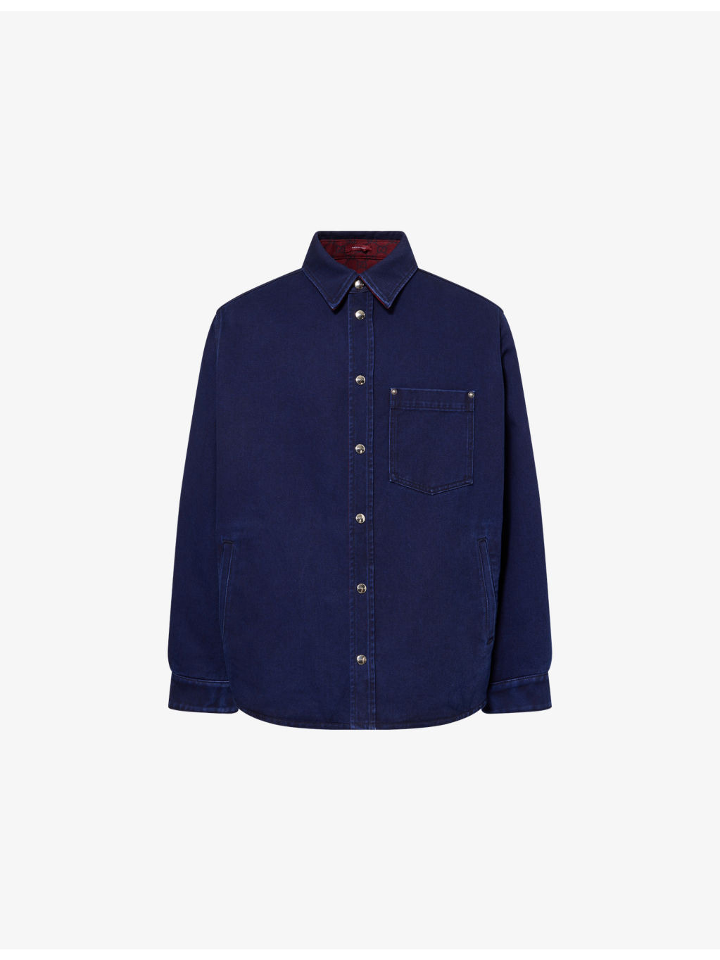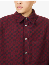 PRODUCT DETAILS - Gucci denim shirt - 100% cotton - Popper fastening at front - Reversible style, oversized fit, pointed collar, long sleeves, press-stud fastening at cuff, one patch pocket at chest, two welt pockets at front, lightly padded, all-over branded monogram print at reverse, curved hem, faded wash, branded silver-toned hardware - Dry clean - Made in Italy - Size UK 40: length 32.4in / 85cm, chest 53.1in / 135cm - Model is 6ft 2in/1.88m and wears a size UK 40 - Midweight, non-stretch Ref: R04481481