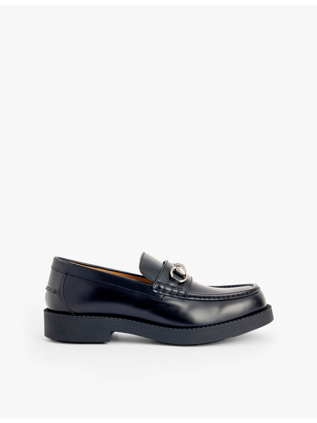 PRODUCT DETAILS - Gucci leather loafers - 100% calf leather - Pulls on - Closed round toe, horsebit plaque at front, silver-toned hardware, all-over smooth leather - Made in Italy - Specialist leather clean - Upper: 100% calf leather - Lining: 100% leather - Sole: 100% rubber - Presented in a box, comes with a dust bag Ref: R04314584