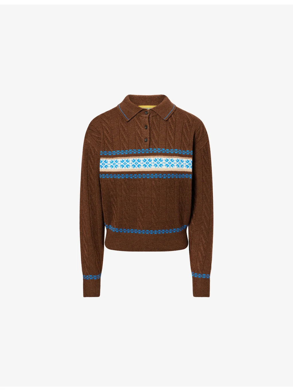 Cable Collegiate Fair Isle Cashmere Polo Jumper