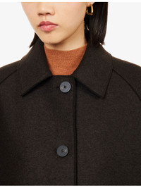 PRODUCT DETAILS - Harris Wharf London wool coat - 100% virgin wool; lining 100% cotton - Exposed button fastening at front - Relaxed fit, spread-collar, raglan long sleeves, two welt pockets at front, all-over felt texture, partially lined - Dry clean only - Made in Italy - True to size - Size UK 10: length 42in / 108cm - Model is 5ft 10in / 1.78m and wears a size UK 10 - Midweight, slight stretch Ref: R04539433