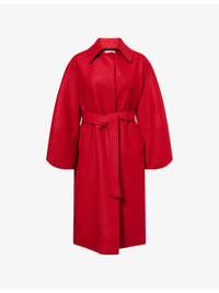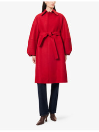 PRODUCT DETAILS - Harris Wharf London wool coat - 100% virgin wool - Self-tie fastening - Regular fit, collar, long puff sleeves, slip pockets at front, pressed texture, longline length - Dry clean - True to size - Size UK 8: length 42in / 107cm - Model is 5ft 10in/1.78m and wears a size UK 8 - Midweight, non-stretch Ref: R04539443