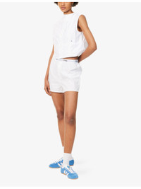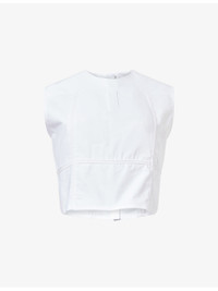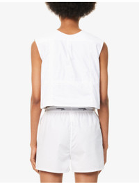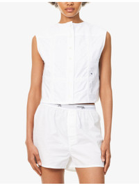 PRODUCT DETAILS - HommeGirls cotton top - 100% cotton - Exposed button fastening at front - Relaxed fit, cropped, round neck, sleeveless, brand embroidery at front, textured - Machine wash at 30°C - Made in Italy - True to size - Size small: length 18in / 46cm - Model is 5ft 10in/1.78m and wears a size small - Lightweight, stretchy Ref: R04475661