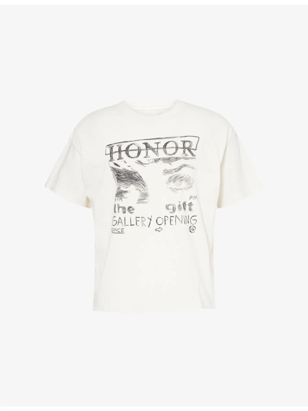 PRODUCT DETAILS - Honor The Gift cotton-jersey T-shirt - 100% cotton - Relaxed fit, crewneck, ribbed trim at neck, dropped shoulders, short sleeves, graphic print at front and back, jersey texture - Machine wash cold - Model is 6ft 2in/1.88m and wears a size medium - Lightweight, non-stretch Ref: R04459291