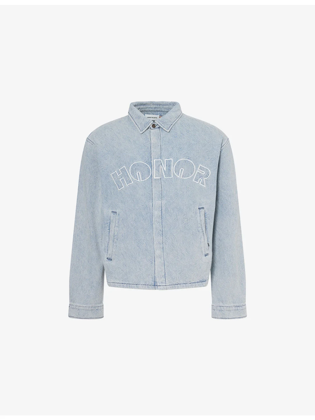 PRODUCT DETAILS - Honor The Gift cotton-blend shirt - 70% cotton, 16% polyester, 14% viscose - Exposed button and concealed pressed stud fastenings at front - Relaxed fit, pointed collar, long sleeves, adjustable barrel cuffs, logo embroidered at front, two side slip pockets, textured finish - Machine wash cold - Size medium: length 27in / 68.5cm, chest 46in / 117cm - Model is 6ft 2in/1.88m and wears a size medium - Midweight, non-stretch Ref: R04459294