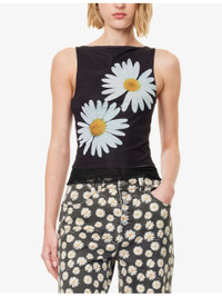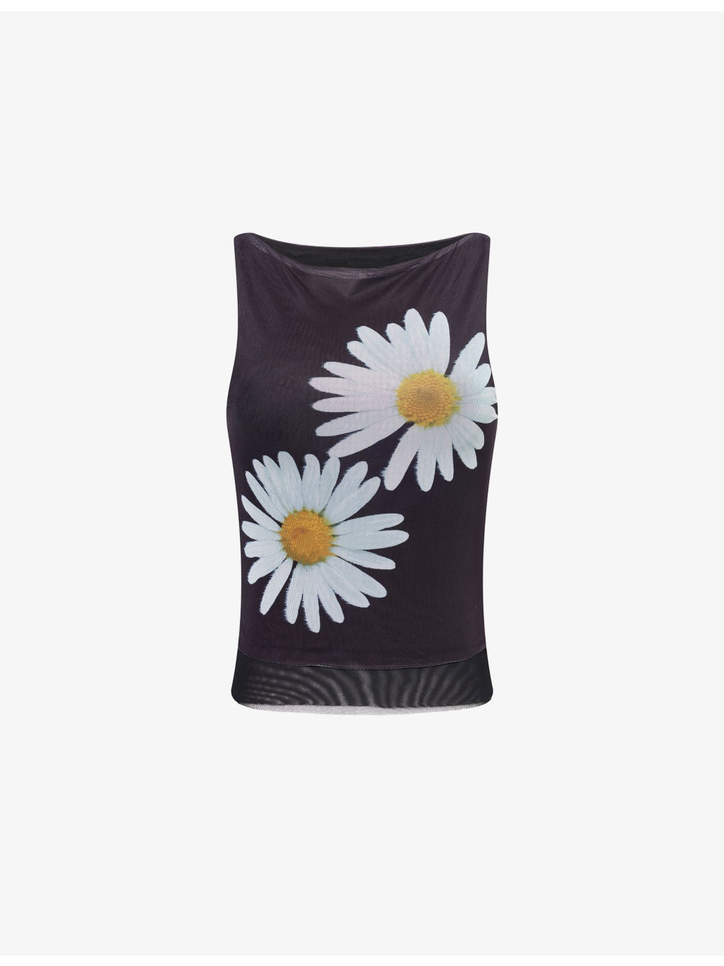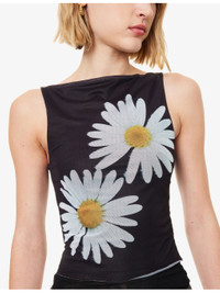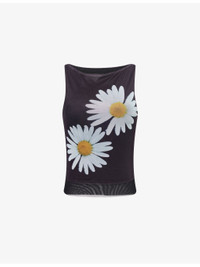 PRODUCT DETAILS - House of Sunny mesh top - 95% polyester, 5% elastane - Slim fit, boat neckline, sleeveless, daisy graphic pattern - Machine wash cold - True to size - Model is 5ft 10in/1.78m and wears a size UK 8 - Lightweight, stretchy Ref: R04412522