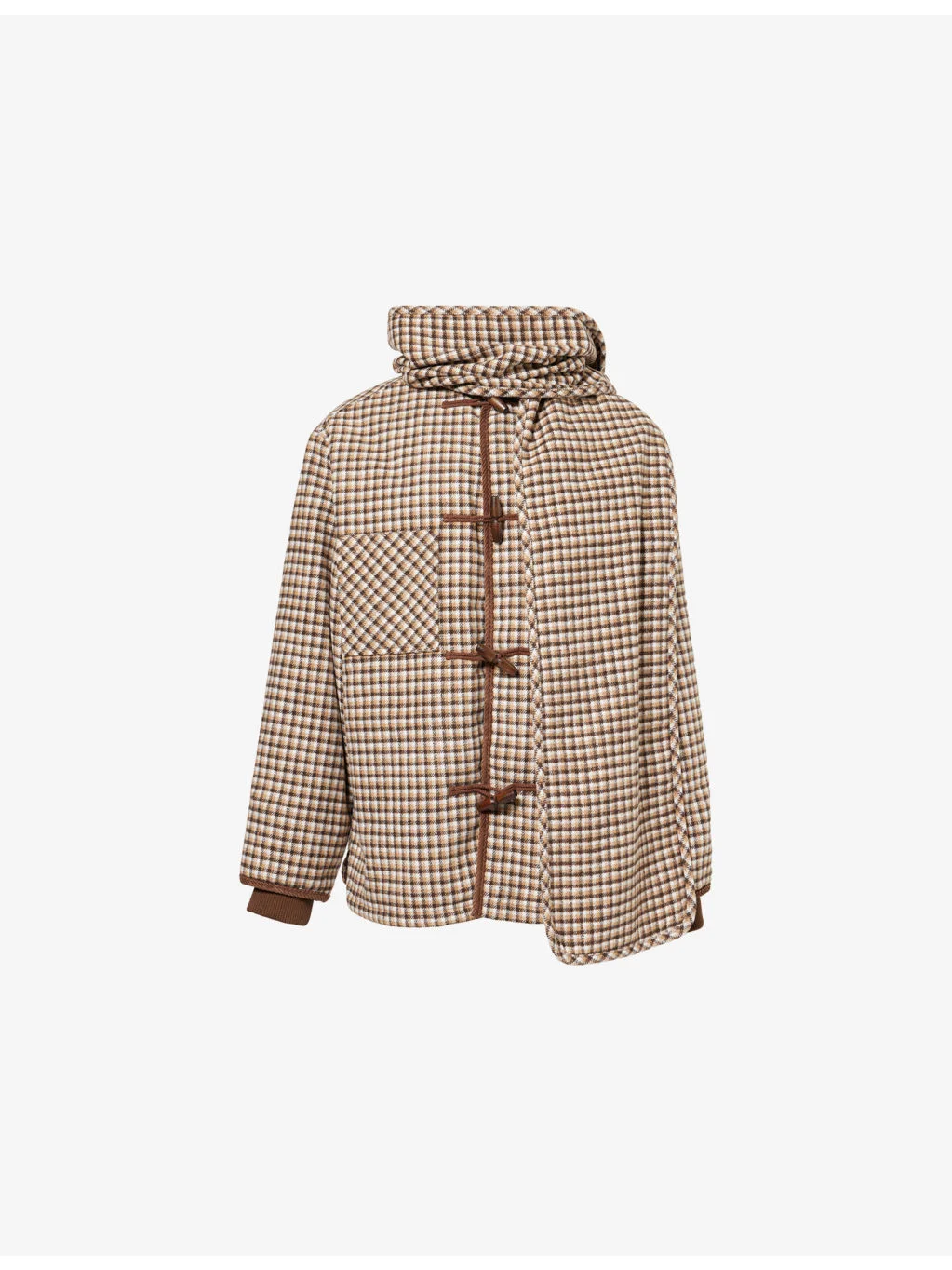 PRODUCT DETAILS - House of Sunny quilted jacket - 100% polyester - Toggle fastening - Relaxed fit, round neck, long sleeves, double layered cuffs, patch pockets at front, brand embossed tab at chest, all-over check print, velvet binding at trims, quilted lining, removable self-tie scarf - Dry clean - True to size - Model is 5ft 10in/1.78m and wears a size small - Midweight, non-stretch Ref: R04593197