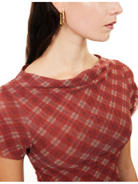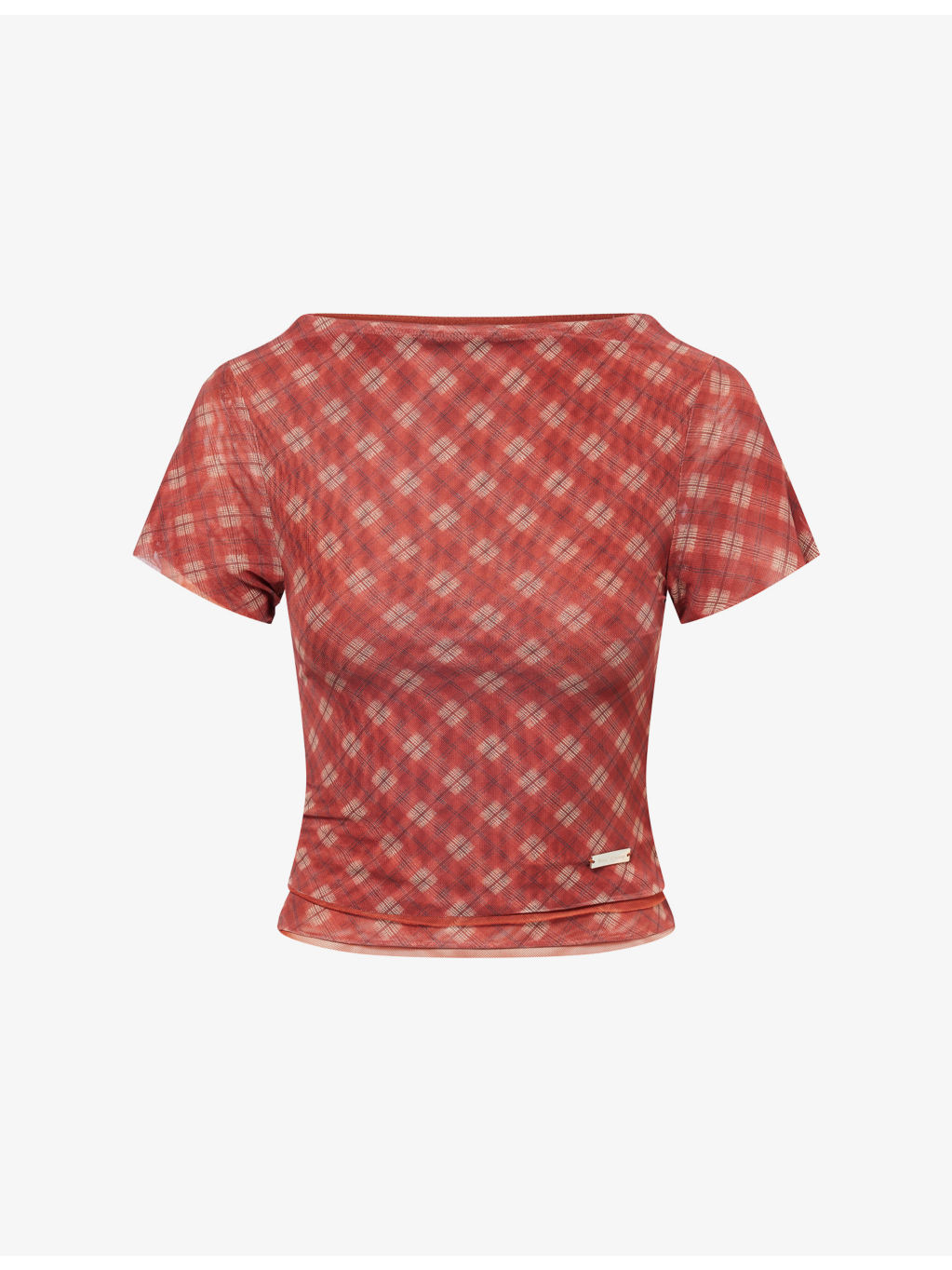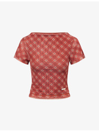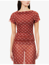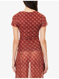 PRODUCT DETAILS - House of Sunny stretch-woven top - 95% polyester, 5% elastane - Slim fit, straight-across neckline, short sleeves, brand plaque at front, all-over check print, all-over mesh texture, multilayered - Machine wash at 30°C - True to size - Model is 5ft 10in/1.78m and wears a size UK 8 - Lightweight, stretchy Ref: R04515197