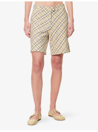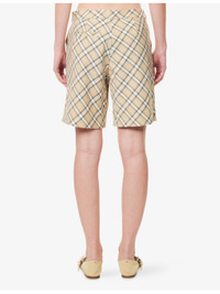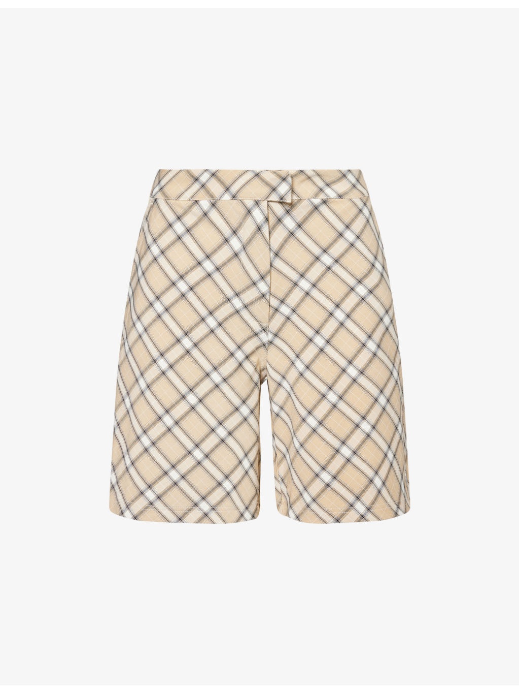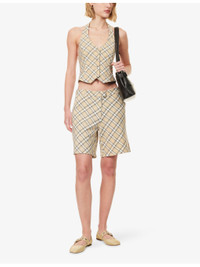 PRODUCT DETAILS - House of Sunny stretch-woven shorts - 87% polyester, 10% viscose, 3% elastane - Concealed button, hook-and-eye and zip-fly fastening at front - Slim fit, high-rise, two side slip pockets, all-over custom check print - Machine wash at 30°C - True to size - Model is 5ft 10in/1.78m and wears a size small - Lightweight, non-stretch Ref: R04412523