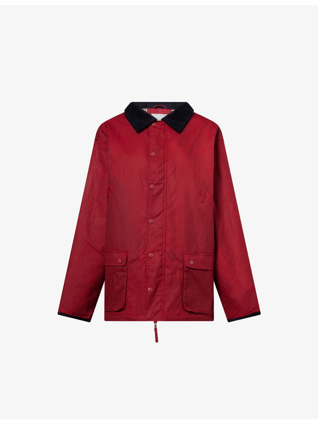 PRODUCT DETAILS - House of Sunny cotton rain jacket - 100% waxed cotton; bodylining 90% polyester, 8% viscose, 2% elastane; sleevelining 80% polyester, 20% cotton - Popper fastening and concealed zip fasetning at front - Relaxed fit, corduroy collar and cuffs, long sleeves, four buttoned pockets at front, panel at back, fully lined - Sponge clean - True to size - Size small: length 29in / 75cm - Model is 5ft 10in/1.78m and wears a size small - Midweight, non-stretch Ref: R04515211