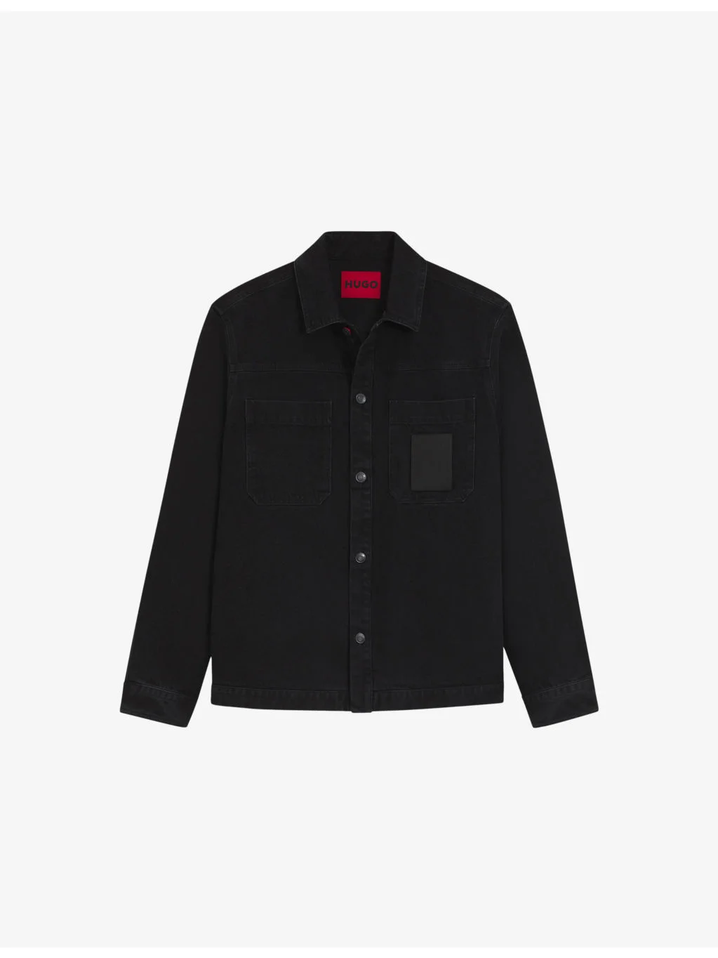 PRODUCT DETAILS - HUGO denim shirt - 100% cotton - Exposed button fastening at front - Oversized fit, collar, long sleeves, two patch pockets at chest, brand patch at pocket, buttoned cuffs, faded wash - Machine wash at 30°C - Model is 6ft 1in/1.85m and wears a size medium - Midweight, non-stretch Ref: R04512375