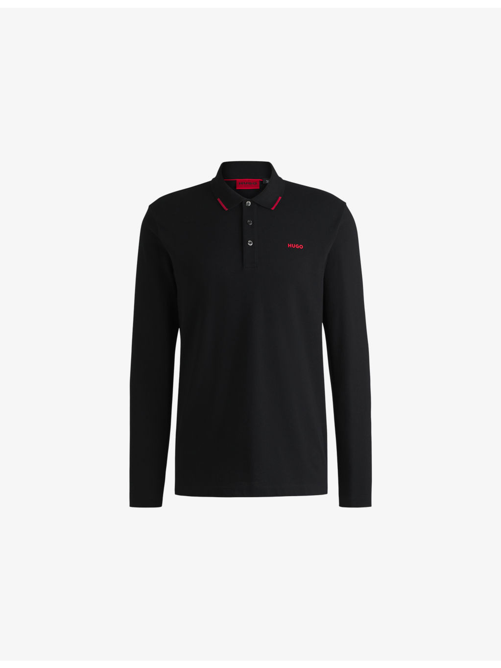 PRODUCT DETAILS - HUGO cotton polo shirt - 100% cotton - Button fastening - Regular fit, polo collar, long sleeves, branded print to chest, contrast trim - Machine wash mild - True to size - Lightweight, non-stretch Ref: R04331774