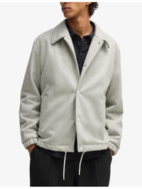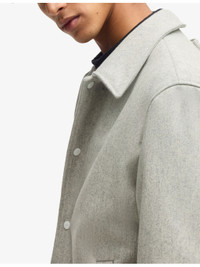 PRODUCT DETAILS - HUGO wool-blend jacket - 80% wool, 20% polyamide - Pressed stud fastening - Regular fit, collar, long sleeves, side pockets, branded tab to back, elasticated trim - Dry clean - True to size - Midweight, slight stretch Ref: R04331859