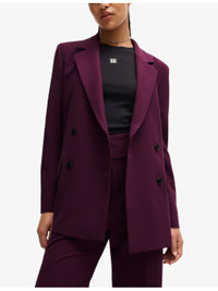 PRODUCT DETAILS - HUGO stretch-woven blazer - 64% polyester, 31% viscose, 5% elastane - Exposed button fastenings to the front - Relaxed fit, notch lapels, long sleeves, double-breasted front, two flap pockets to the front, fully lined - Dry clean only - True to size - Lightweight, slight stretch Ref: R04285437