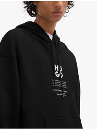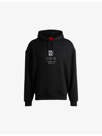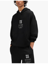 PRODUCT DETAILS - HUGO cotton-blend hoody - 70% cotton, 30% polyester; lining 100% cotton - Pulls on - Oversized fit, drawstring hood, long sleeves, dropped shoulders, brand print to the front, kangaroo pocket to the front, flame and floral graphic print to the back, ribbed cuffs and hem - Machine wash cold - Model is 6ft 2in/1.88m and wears a size medium - Midweight, non-stretch Ref: R04284016