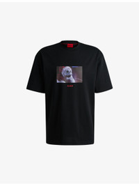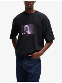PRODUCT DETAILS - HUGO cotton T-shirt - 100% cotton - Pulls on - Oversized fit, crew neck, dropped shoulders, short sleeves, graphic print at front and back, branded text print at front, Disney logo at back - Machine wash at 30°C - Lightweight, non-stretch Ref: R04284508