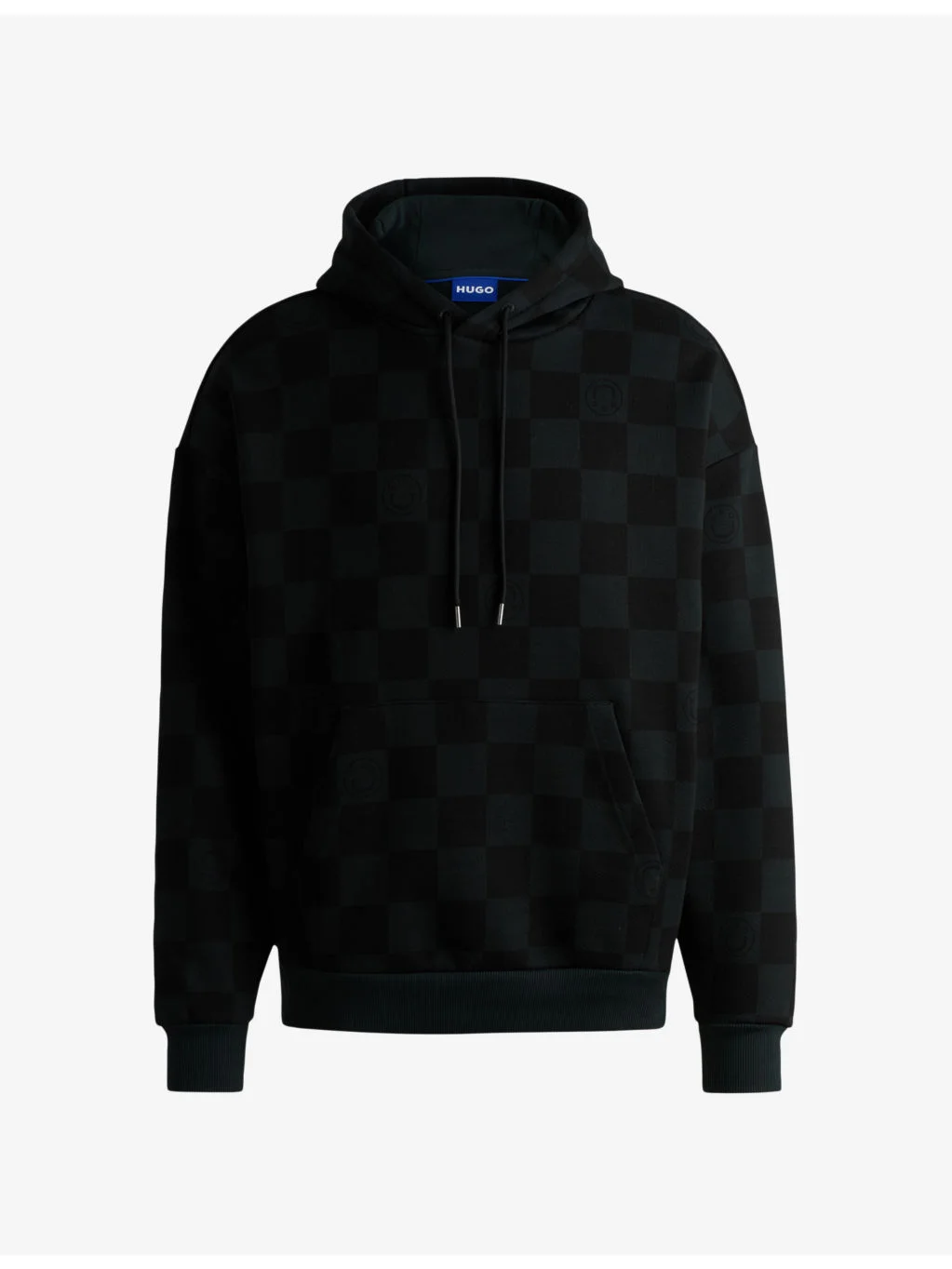 PRODUCT DETAILS - HUGO cotton hoody - 100% cotton - Pulls on - Relaxed fit, hooded, logo at the chest, long sleeves, all-over square pattern, ribbed trims, kangaroo pocket at the front - Machine wash cold - Model is 6ft 1in/1.85m and wears a size medium - Midweight, non-stretch Ref: R04252910