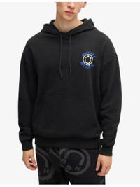 PRODUCT DETAILS - HUGO cotton-jersey hoody - 100% cotton - Pulls on - Relaxed fit, hooded, graphic print at the front and back, long sleeves, ribbed hem, kangaroo pocket at the front - Machine wash at 30°C - Model is 6ft 2in/1.88m and wears a size medium - Midweight, non-stretch Ref: R04284938