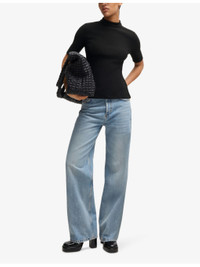 PRODUCT DETAILS - HUGO stretch-jersey top - 98% polyester, 2% elastane - Slips on - Slim fit, high neck, short sleeves, pressed studs at the back - Machine wash cold - True to size - Model is 5ft 9in/1.75m and wears a size small - Lightweight, slight stretch Ref: R04252916