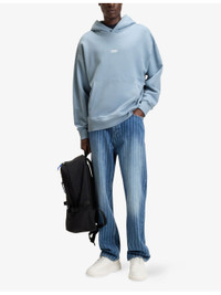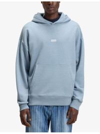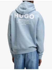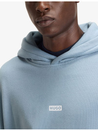 PRODUCT DETAILS - HUGO cotton hoody - 100% cotton - Relaxed fit, hooded, logo print at the front, long sleeves, kangaroo pocket, ribbed trims - Machine wash at 30°C - Model is 6ft 2in/1.88m and wears a size medium - Midweight, non-stretch Ref: R04475978