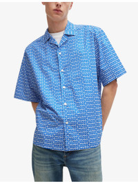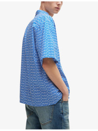 PRODUCT DETAILS - HUGO cotton shirt - 100% cotton - Exposed button fastening at front - Relaxed fit, Cuban collar, short sleeves, all-over logo print - Machine wash cold - Model is 6ft 2in/1.88m and wears a size medium - Lightweight, non-stretch Ref: R04252912