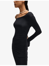 PRODUCT DETAILS - HUGO stretch-jersey maxi dress - 95% viscose, 5% elastane - Slips on - Slim fit, off-the-shoulder design, long sleeves, split hem - Machine wash mild - True to size - Lightweight, slight stretch Ref: R04285505
