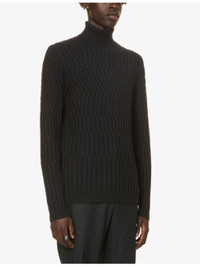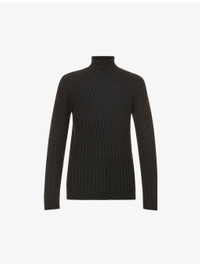 PRODUCT DETAILS - HUGO wool and cotton-blend jumper - 50% wool, 50% cotton - Pulls on - Turtleneck, long sleeves, all-over graphic pattern, branded plaque at front hem, regular fit, ribbed trims - Machine wash cold - Model is 6ft 2in/1.88m and wears a size medium - Lightweight, slight stretch Ref: R03788528